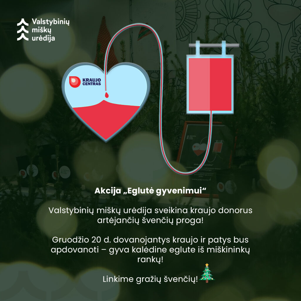 Valstybinių miškų urėdijos miškininkai ir Vilniaus universiteto ligoninės Santaros klinikų Kraujo centras jau ketvirtus metus iš eilės organizuoja šiltą ir prasmingą akciją „Eglutė gyvenimui“. Jos metu, gruodžio 20 d., kraujo aukojantys žmonės bus nustebinti dovanomis iš miško – miškininkų išaugintomis kalėdinėmis eglutėmis vazonėliuose.