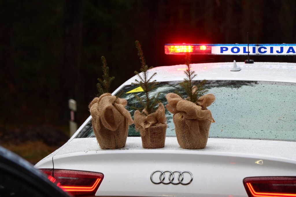 Kasmet miškininkai kartu su policininkais dovanoja kelis šimtus VMU medelynuose išaugintų eglučių – tvarumo ir atsakingumo simbolių.