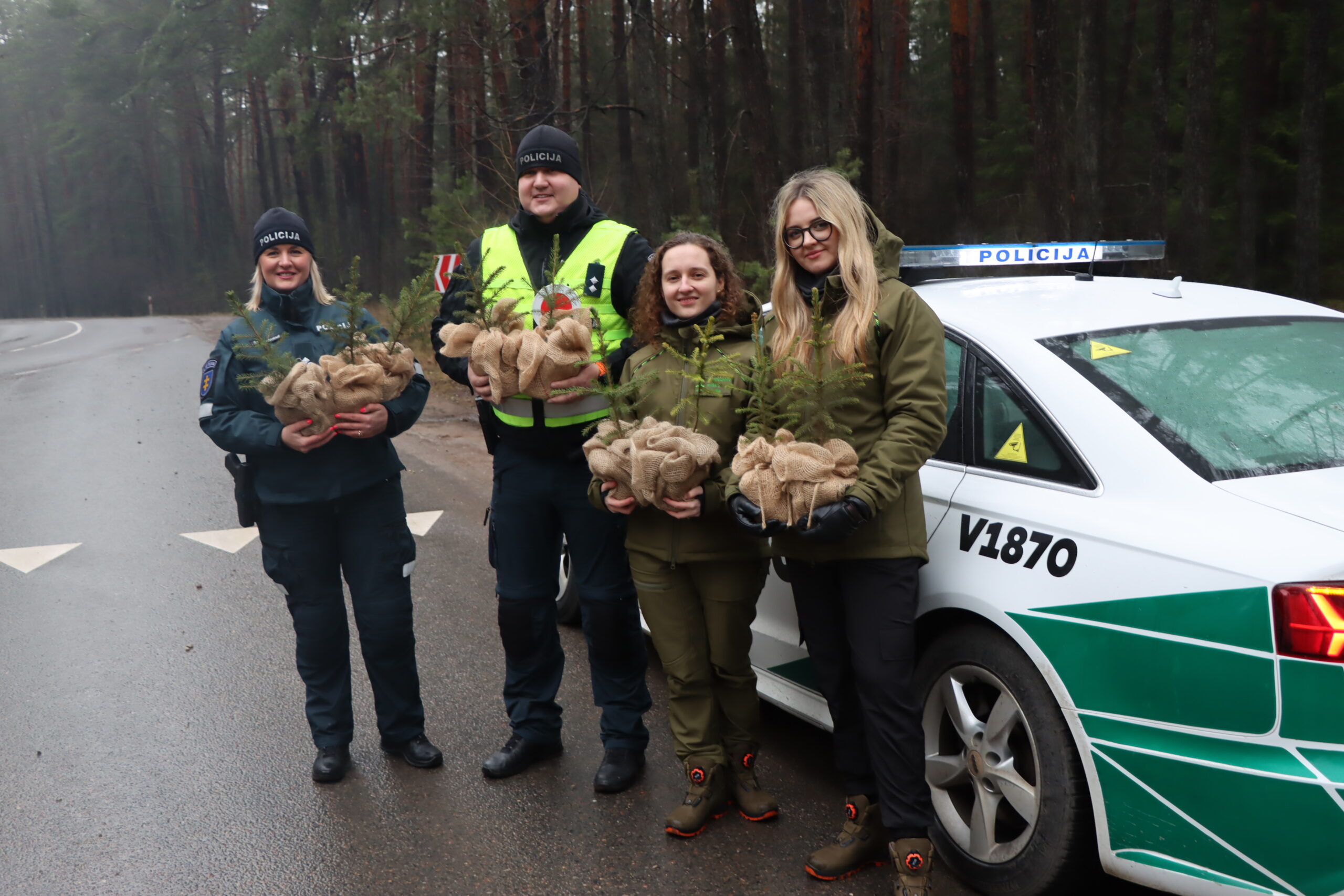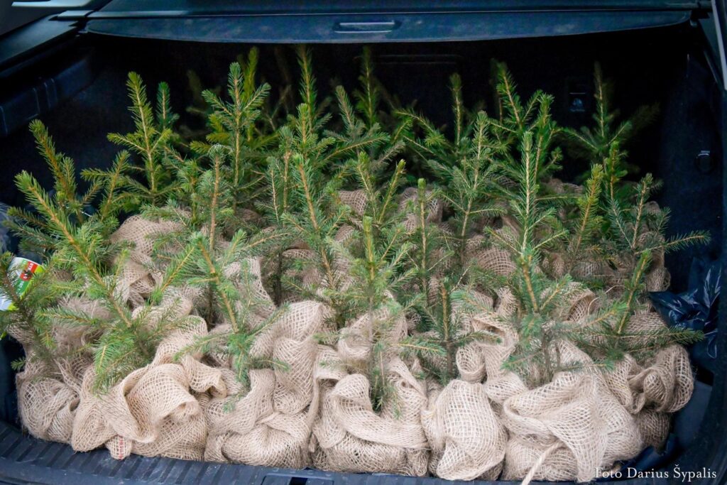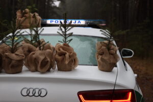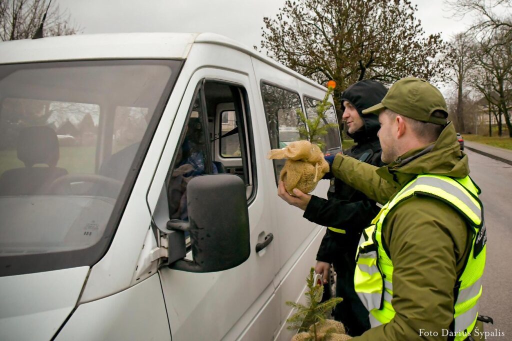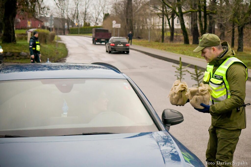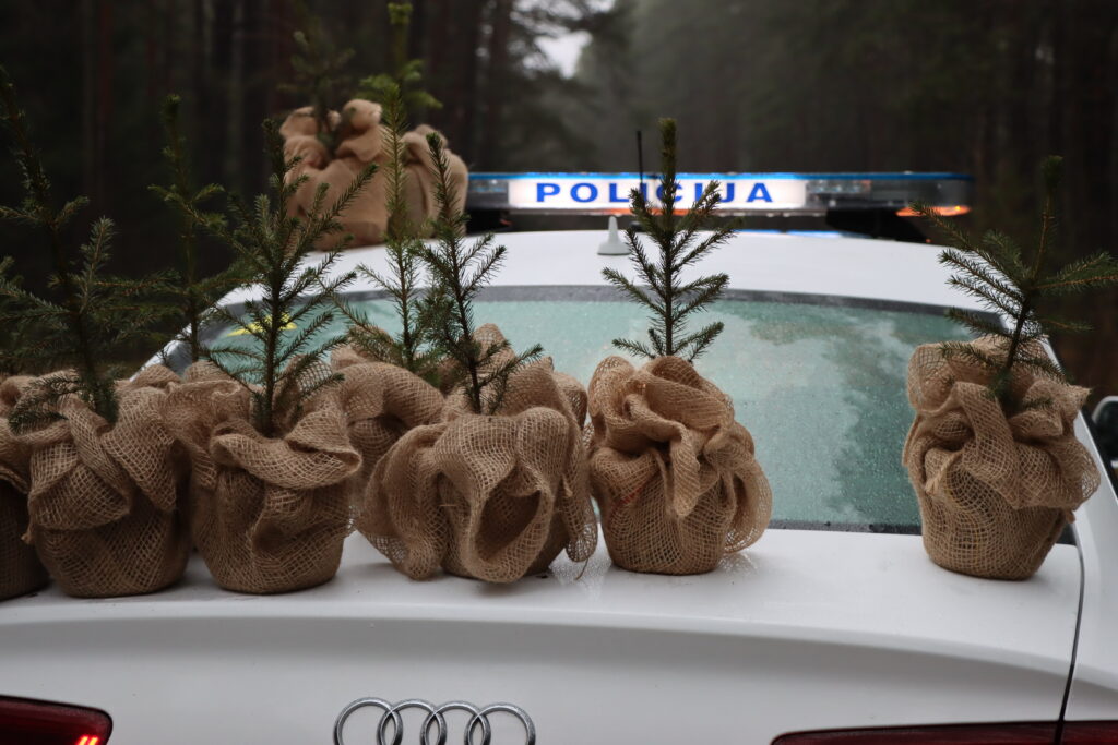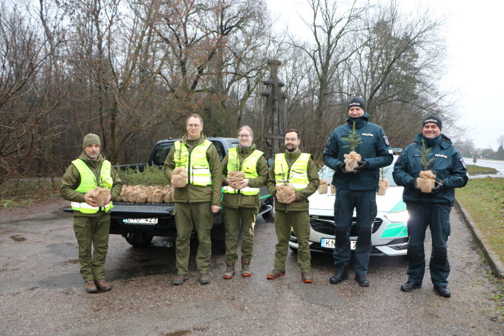 Kasmet miškininkai kartu su policininkais dovanoja kelis šimtus VMU medelynuose išaugintų eglučių – tvarumo ir atsakingumo simbolių.