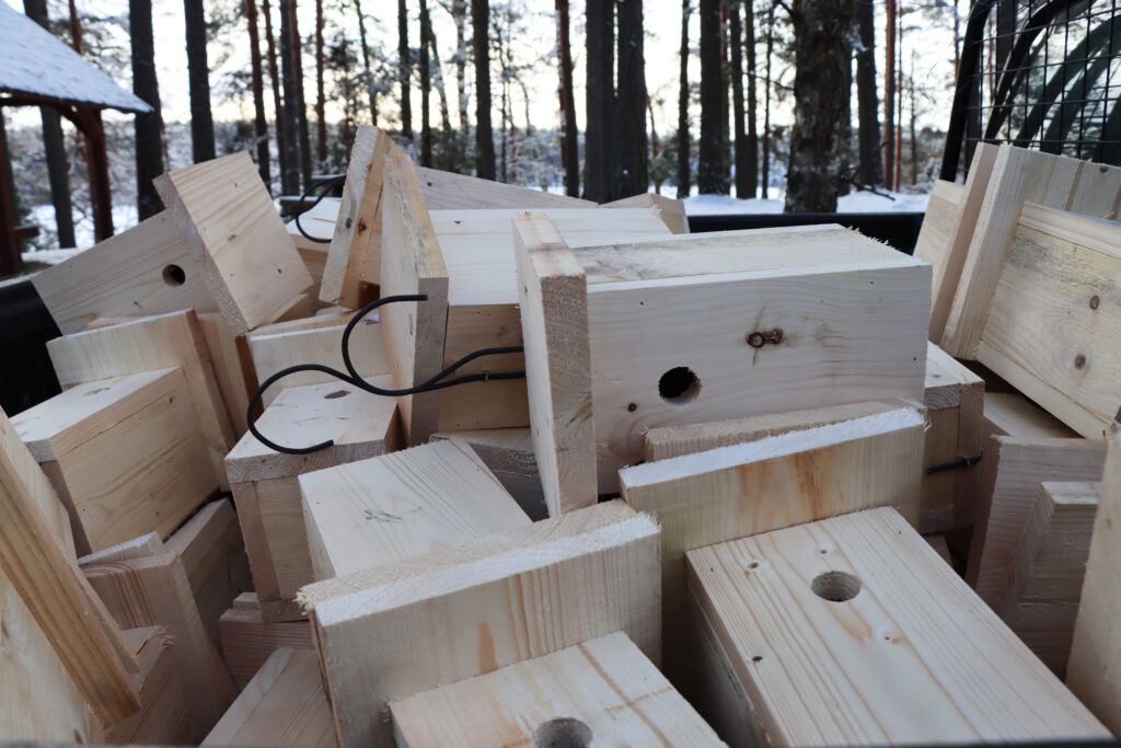„Iš vidinės pusės lenta turėtų būti neobliuota, kad paukščiukas galėtų geriau išlipti. Iš kitos pusės – obliuota, lygesnė, tada vanduo trumpiau užsilaiko, greičiau išgaruoja, medis mažiau pūva“, – sako Jonas.
